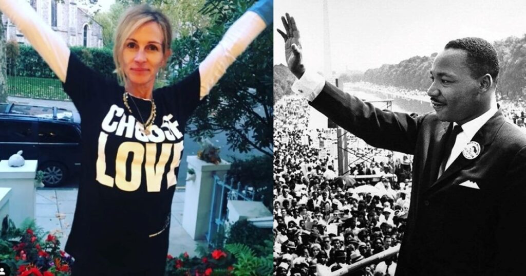 A estrela Julia Roberts revelou que, na época do seu nascimento, seus pais estavam sem dinheiro e que o líder dos direitos civis e símbolo na luta contra a discriminação racial, Martin Luther King, e a esposa Coretta pagaram a conta do hospital em que ela nasceu.